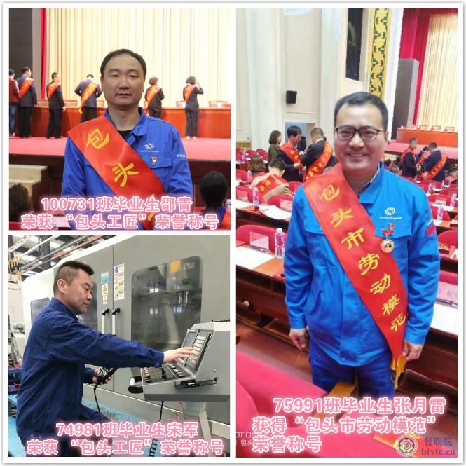 在2019年4月30日包头市庆祝“五一”国际劳动节暨“包头工匠”命名表彰大会上,包头职业技术学院数控技术专业75991班毕业生张月雷荣获“包头市劳动模范”荣誉称号,100731班毕业生邵青、74981班毕业生宋军荣获“包头工匠”荣誉称号。