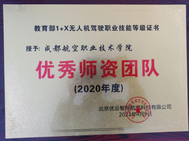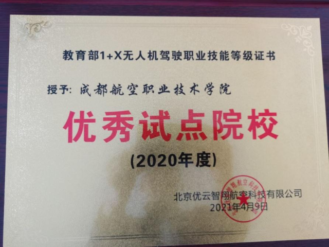 为深入贯彻落实《国家职业教育改革实施方案》《关于在院校实施“学历证书+若干职业技能等级证书”制度试点方案》,推进1+X证书制度试点工作,落实试点工作有关政策、文件要求,近日,经教育部指定的第三方评价组织北京优云智翔航空科技有限公司研究决定,对2020年度“1+X无人机驾驶职业技能等级证书”试点工作中的“优秀试点院校”和“优秀师资团队”进行表彰,最终,成都航空职业技术学院同时获得上述两项殊荣。