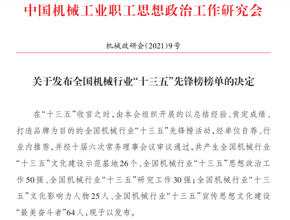 此次评选活动是由中国机械工业职工思想政治工作研究会主办,目的是在“十三五”收官之时,组织开展的以总结经验、肯定成绩、打造品牌为目的的全国机械行业“十三五”先锋榜活动,此次共评选出全国机械行业“十三五”宣传思想文化建设“最美奋斗者”64人,全国共有14名中高职院校教师获得此殊荣,我院赵江招老师位列其中。