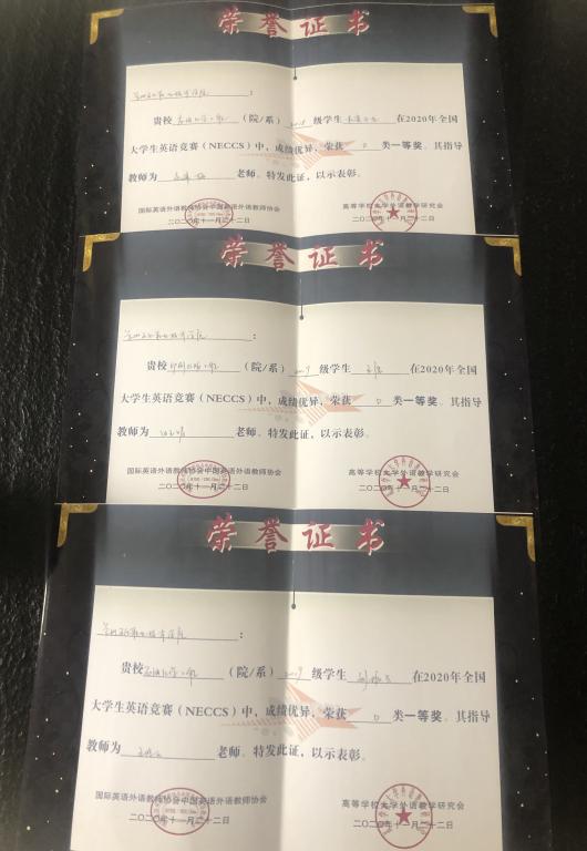 我校于2019年开始承办大学生英语竞赛初赛,2020年共有405名选手报名参赛,经初赛产生了14名二等奖,22名三等奖,三名选手获得决赛资格。国际教育学院为三位选手指派竞赛辅导经验丰富的指导教师,结合;历年真题、样题和初赛赛题进行针对性辅导。