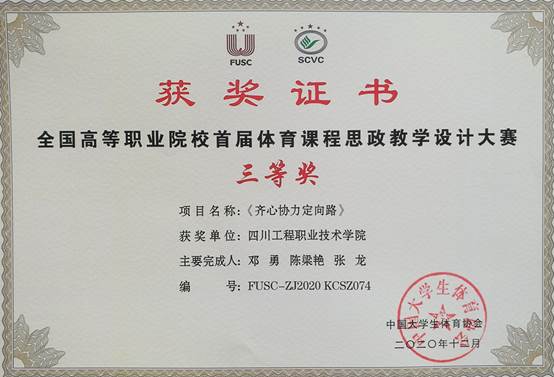 本次大赛共收到全国28个省自治区直辖市118所学校的118项教学设计案例及现场教学视频作品。经组委会组织专家开展网络盲评会议评审复审和公示,最终我校参赛作品荣获三等奖,也是该项大赛四川省唯一获奖作品。(文/图 体育部)