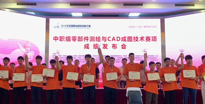 2019年全国职业院校技能大赛中职组“零部件测绘与CAD成图技术”于6月1-4日在福建工业学校举行,共有125所职业院校的250名选手参加大赛。经过紧张激烈的角逐,山东省轻工工程学校参赛选手16汽修班马亚飞、17模具2班曲锐(指导老师乔慧、王雷)凭借扎实的专业基础与技能,以优秀的成绩勇夺金牌。这枚金牌是继2018年第一届“零部件测绘与CAD成图技术”赛项夺金后,轻工学校2019年再次获得的该赛项金牌。