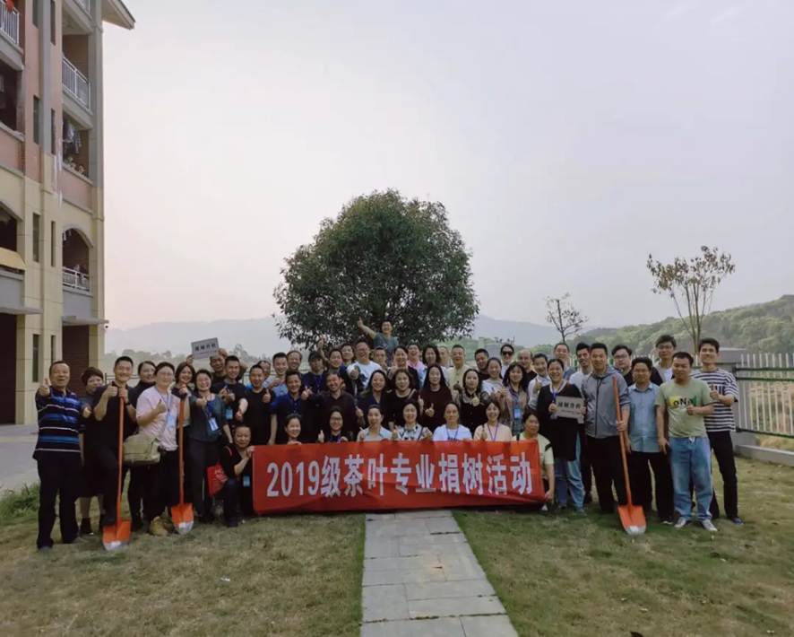 专题报告结束后,2019级新型职业农民茶叶班学员情系母校播种希望,为学校捐赠了桂花树种苗,师生们在北校区开展植树活动。活动现场,陈群教授与学员一起,挥锹培土、浇水,种下美好希望,为学校的绿化增添一抹亮丽的色彩。