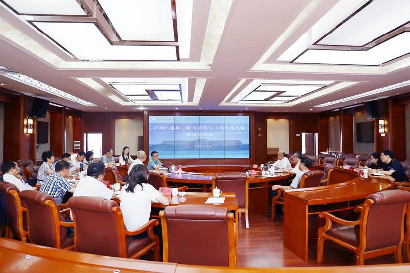 学校党委书记赵伟介绍了学校办学情况及学校党员大会确定的“双升”“双提”发展目标。学校党委副书记、校长伍星就两校交流合作开展情况,学校与云南民族大学澜沧江—湄公河国际职业学院合作、教学资源共享共用等进行了深入交流。