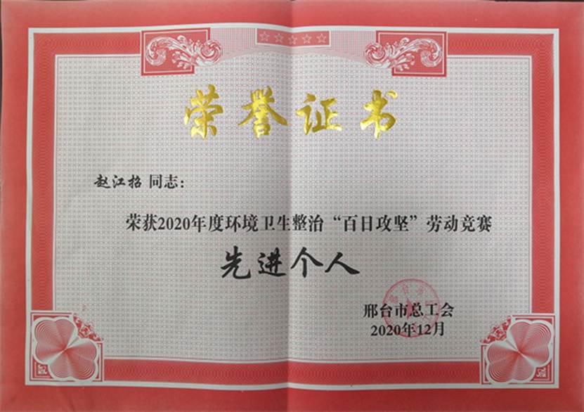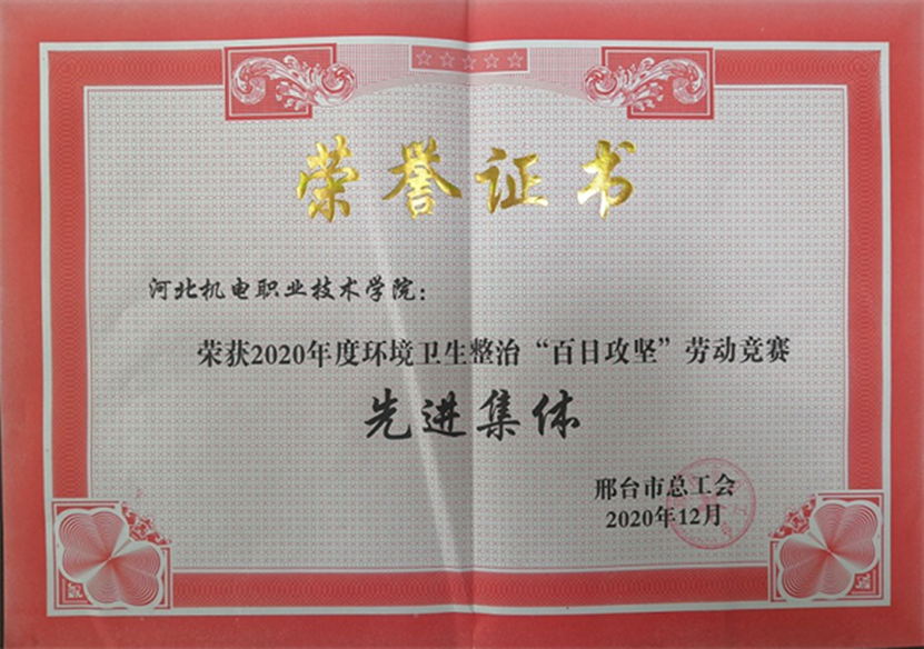 近日,我院荣获2020年度环境卫生整治“百日攻坚”劳动竞赛先进集体,赵江招老师荣获2020年度环境卫生整治“百日攻坚”劳动竞赛先进个人。