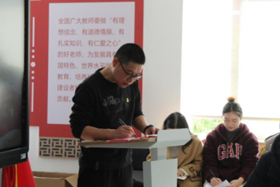 最后,党总支书记张荣路进行总结发言。首先,他就林星、江思欧、叶津成等十位发展对象在学习、学生工作、各项大赛中取得的成绩表示高度肯定,并就十位发展对象被接收为预备党员表示祝贺,并提出了更高要求,希望大家以此为新起点,更加严格要求自己,积极向优秀党员学习,向党组织靠拢,争取成为一名光荣优秀的共产党员,不忘初心,勇担使命,为共产主义事业不懈奋斗。同时,他表示作为党总支书记,他见证了一届届学生党员的发展,我党从成立之初的几十名党员发展到今天拥有9000多万名共产党员大党绝非偶然,希望每位预同志端正自己的入党动机,保持认真的入党态度,要仔细慎重对待自己的入党材料以及相关资料的填写,这关乎每位同学一生。最后,他提到在场的所有党员更应以高要求高标准规范自己,遵守党的纪律,发展党的优秀作风,做好党员的带头作用。