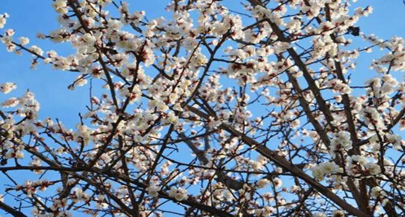 教学楼旁,一大片杏花布满整个天空
