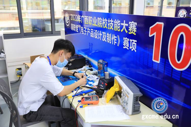 4月16日,由广西壮族自治区教育厅主办,我校承办的2022年广西职业院校技能大赛高职组“电子产品及制作”赛项在我校电气工程学院第一实训楼顺利进行。赛项共有来自13所院校的代表队参加。