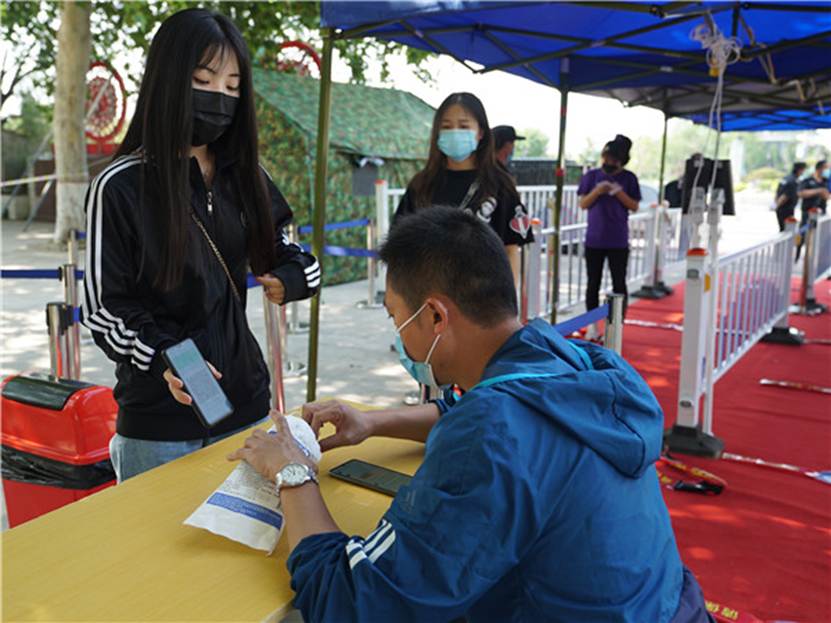 学校在南校区东门口设立报到点,守好校园第一道安全屏障。执勤教职工对学生们的行李和手部进行消毒后,学生们按照地面的醒目标识,间隔一米距离,列队依次验证健康码,经红外线体温检测无异常后,方可进入校园。进校后,学生们到各自所在学院的报到处进行报到。执勤教职工们依次检查学生们的“体温健康打卡记录、疫情防控学习情况”,收取学生们的“返校健康承诺书”。学生们扫码确认返校,接受二次体温检测后可进入宿舍。