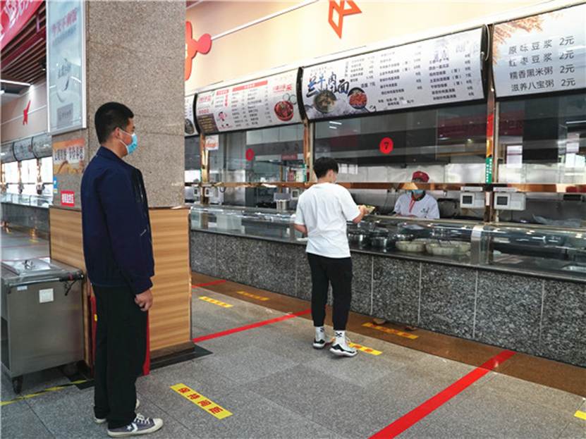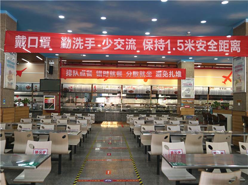校园内,学生公寓、食堂、教学楼等公共区域张贴着醒目的防疫标语,为学生们营造了温馨的返校氛围。一个个青春靓丽的身影又出现在校园中,宁静的校园恢复了往日的生机与活力。