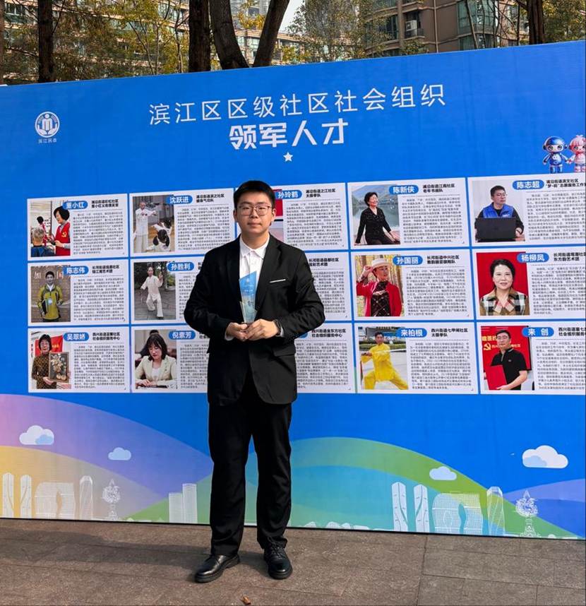 陈志超,现代信息技术学院大数据2201班学生,曾获浙江省国际大学生创新大赛金奖,浙江省暑期实践优秀调研报告大赛决赛二等奖,杭州市滨江区社区社会组织领军人才。