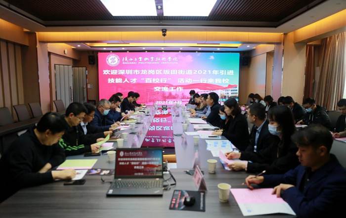 4月21日下午,由深圳市龙岗区坂田街道办事处人力资源服务中心主任方庆华带队,深圳市康冠科技股份有限公司、深圳市艾比森光电股份有限公司、深圳市唯真电机发展有限公司等一行16家企业来我校洽谈2021年引进技能人才“百校行”校企合作事宜。学院副院长段峻,相关二级学院党总支书记参加了本次会议。就业处、校企合作处副处长刘其兵主持会议。
