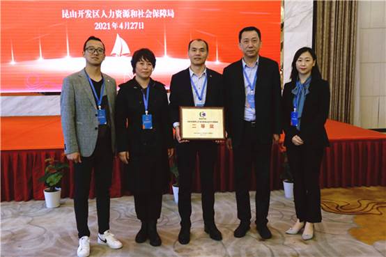 4月27日,2021年昆山开发区政校企合作年会暨人力资源洽谈会在江苏昆山举行,我校副校长侯晓方、招就处处长史小英、航空制造工程学院党总支书记韩东、自动化工程学院党总支副书记张蕾及人工智能学院学工办主任张林应邀参会。会上,昆山开发区对54所获得“2020年度政校企合作优秀院校”进行了奖励,我校喜获二等奖及30万元奖金。副校长侯晓方代表我校与神基集团签署了现代学徒制协议并作大会交流发言,招就处处长史小英代表学校领奖。