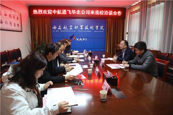 4月16日上午,中航通飞华北公司董事长、党委书记韩建昌,人力资源部部长孟良一行来我校洽谈合作。学校党委书记周岩、副校长张敏华、招就处(校企合作处)处长史小英及相关二级学院领导在行政楼第一会议室接待了来访客人。会议由副校长张敏华主持。