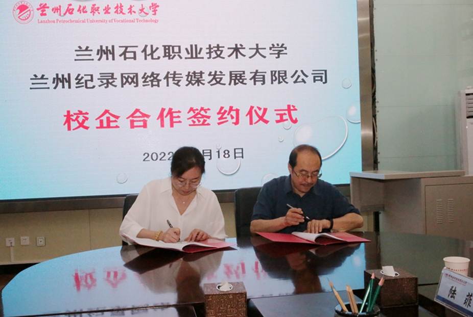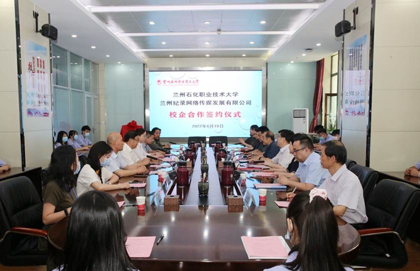 6月18日上午,兰州石化职业技术学院与兰州纪录网络传媒发展有限公司校企合作签约揭牌仪式在学校综合楼广汇厅举行。我校党委副书记周兴中,分管领导蒲卫晖,合作办学处负责人刘雅芳,纪录网书画频道总顾问李忠海,纪录网总编辑李福祥,兰州纪录网络传媒发展有限公司总经理顾正萍,纪录网书画频道总监、教育部书画等级考试书法专业讲师石聚智,印刷出版工程学院负责人及师生代表参加签约仪式。