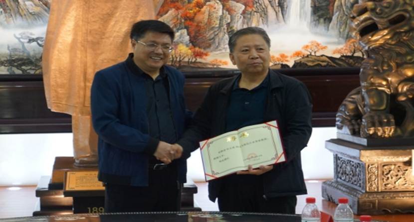 签约仪式上,学校聘请天水飞天雕漆工艺家俱有限责任公司五位工艺美术工作大师为我校企业客座教授。赵彦军为聘请的企业客座教授颁发聘书。