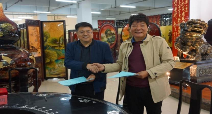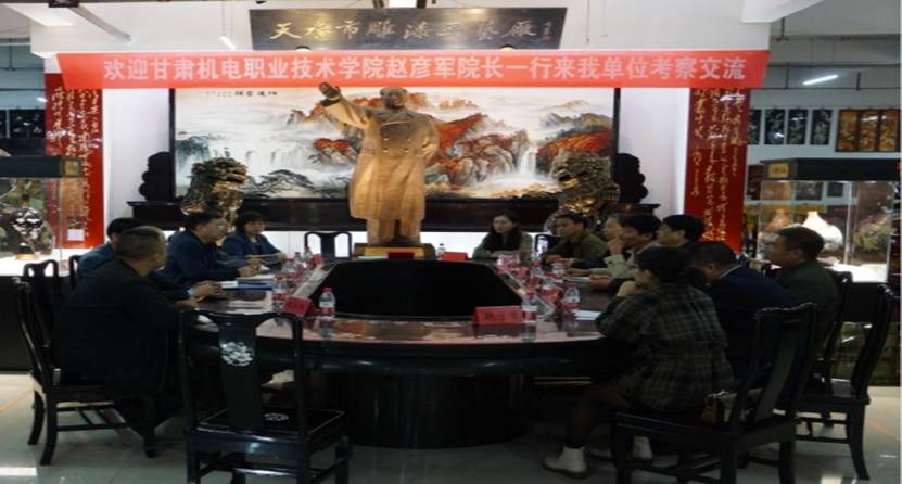 天水飞天雕漆工艺家俱有限责任公司董事长张晓彤、总经理朱良军分别介绍了天水飞天雕漆工艺家俱有限责任公司的基本情况、主要产品、发展战略,并指出校企合作是学校发展的需要,也是企业发展的需要,在合作过程中,将加强与学校的沟通协调,充分发挥企业的资源优势和市场优势,为当地非遗文化发展和非遗产品推广助力。
