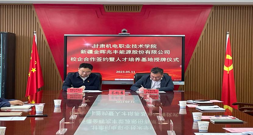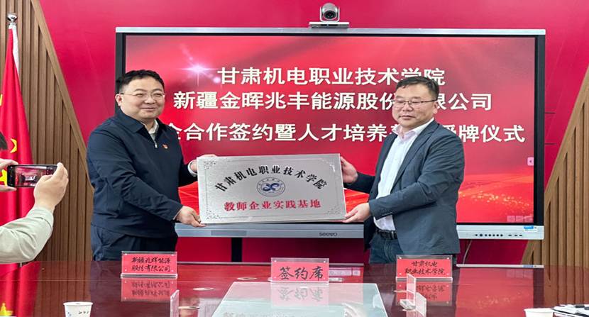 随后,校企双方领导共同签订定向培养“金晖班”人才培养协议书,并举行“校企合作人才培养基地”“教师企业实践基地”“实习就业基地”授牌仪式。