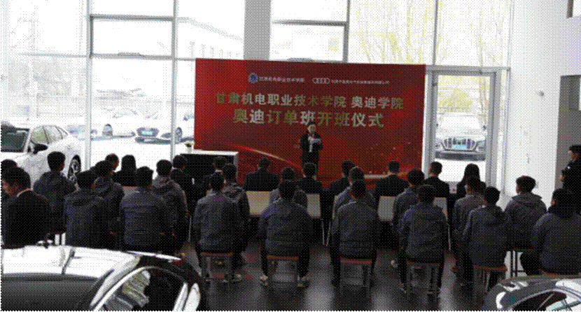 随后,车辆工程学院2019届汽车营销专业优秀毕业生把梅分享了自己如何从一名懵懂学生,成长为甘肃中盛奥华汽车销售服务有限公司人事主管的奋斗历程。CL2122班学生买金明代表“奥迪订单班”全体学生作了表态发言。