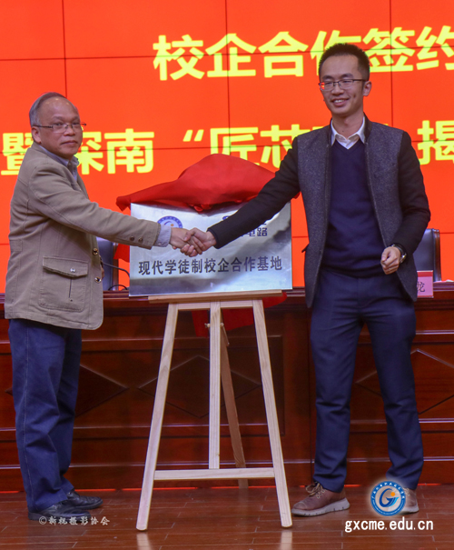 随后,学院和深南双方领导签署校企合作协议,为现代学徒制校企合作基地和深南“匠芯班”揭牌。校企双方领导给订单班指导老师代表发放了聘书。