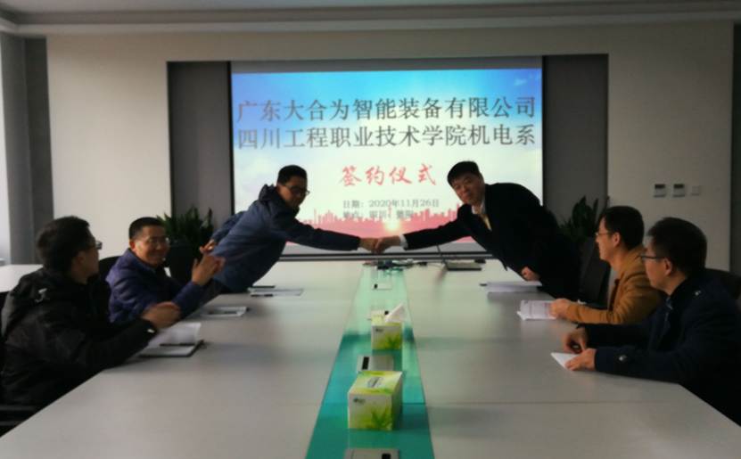 2020年11月26日下午,机电工程系与广东大合为智能装备有限公司校企合作协议在西门子创新中心会议室举行。机电工程系主任武友德,党总支书记朱超,广东大合为智能装备有限公司总经理邢国恒,机电工程系教师代表参加签约仪式。