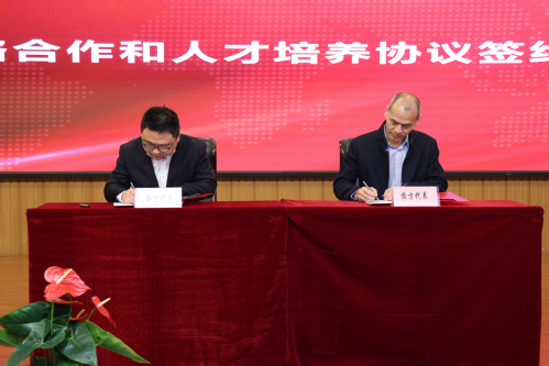 最后,侯晓方副校长与薛凯副总经理签订了中国特色学徒制人才培养协议和战略合作协议,张敏华校长与雷让岐总经理共同为高素质技术技能人才培养基地揭牌。