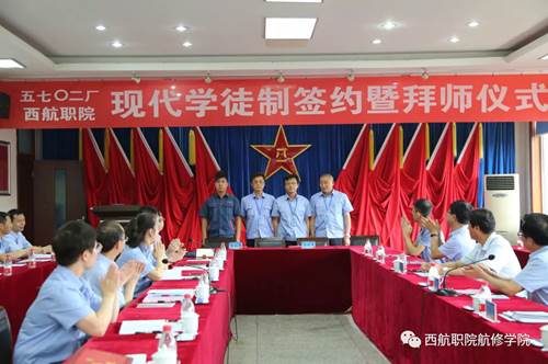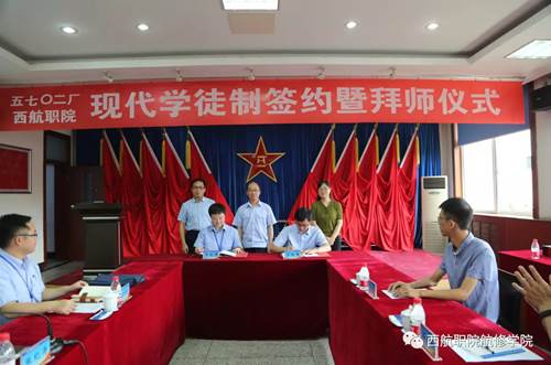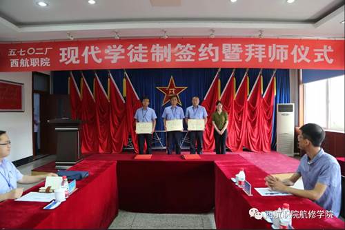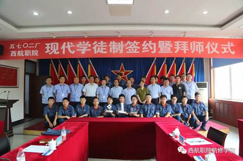 2018年6月15日,西安航空职业技术学院和中国人民解放军第5702工厂举办现代学徒制签约暨拜师仪式,本次拜师仪式以“弘扬师徒文化,践行工匠精神”为主题。早上7时30分,院领导和5702订单班学生前往5702厂。