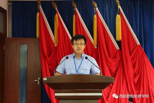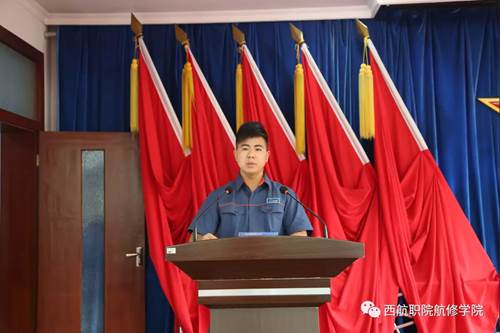 仪式第四项,西安航空职业技术学院党委书记周岩发表讲话,他希望同学们抓住难得的机遇,努力提高自身操作技能,锤炼高超本领,为明日成为栋梁之才奠定良好基础。