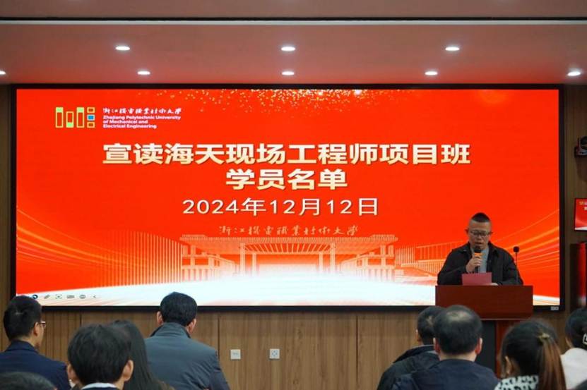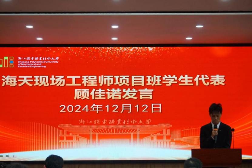 12月12日下午,海天现场工程师项目班正式启动。此次启动仪式汇聚了众多领导、嘉宾、教师及学生代表。海天塑机集团有限公司海天大学校长陈兴、校长助理黄江淮、人力资源管理部经理郑巧玲,浙江机电职业技术大学自动化学院党总支书记陈罡、副院长王耀军等共同出席仪式。