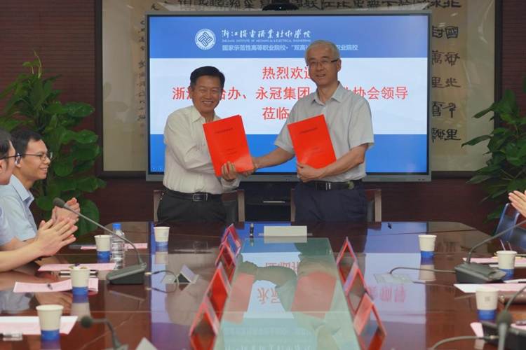 6月11日,我校与永冠能源科技集团战略合作签约仪式在滨江校区举行,浙江省台办副主任周晁利、浙江省台办经济处处长奚烧圣、永冠能源科技集团副执行长、宁波永祥铸造有限公司董事长徐清雄、集团人资部协理王宪光、技术处副经理郑仲渊、浙江省铸造行业协会会长郭建明、浙江省机械工程学会铸造分会副理事长兼秘书长潘东杰等一行11人来校,我校校长贺星岳、副校长丁明军及教务处、科研处、港澳台办负责人出席签约仪式。仪式由校港澳台办主任陶宇主持。